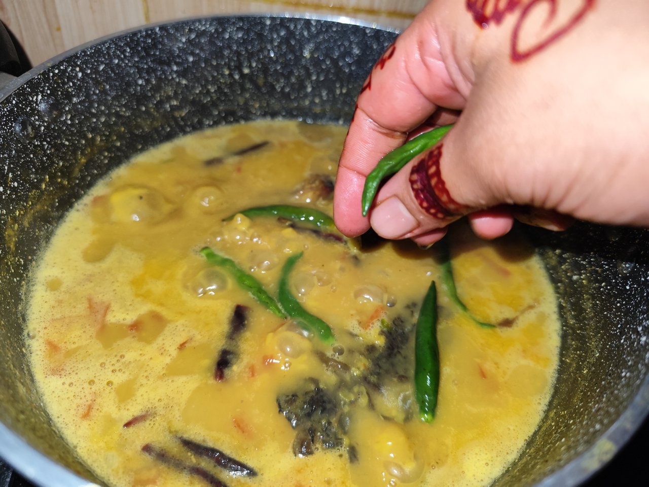 After completing the necessary preparations for the moong dal recipe with fish head, now let's move on to the main cooking.