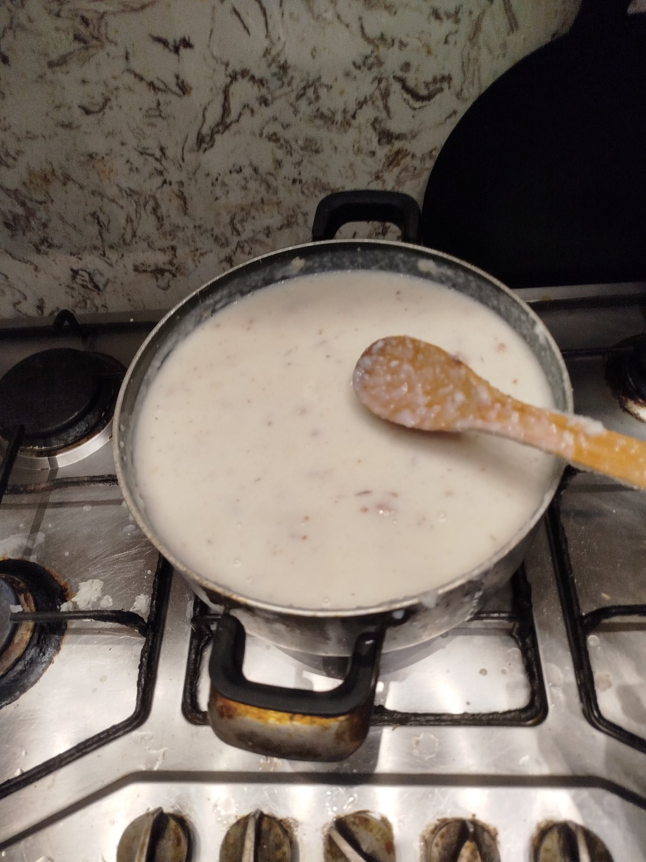 Incorporated all nuts very well in the Kheer for that used wooden spatula and off the flame.