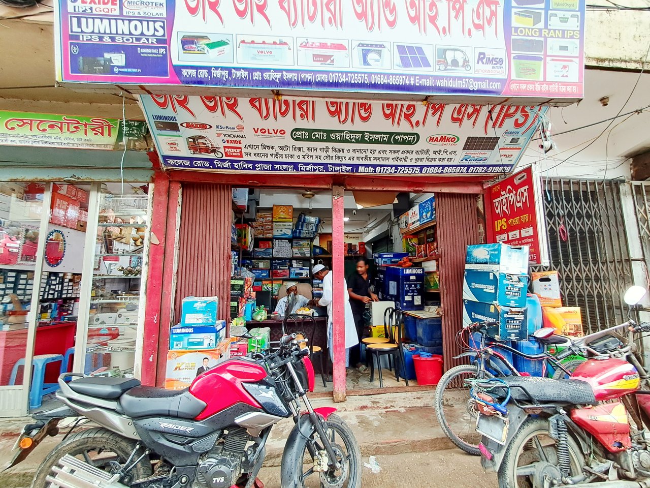 After a while, the IPS repair shop opened and inside I saw various IPS and batteries of the latest model. I took a picture of this shop from a distance. This IPS repair shop is always busy but I found out later that the main engineer here mainly works at night. There were many bikes parked in front of this shop, among which was my cousin's bike which we brought.