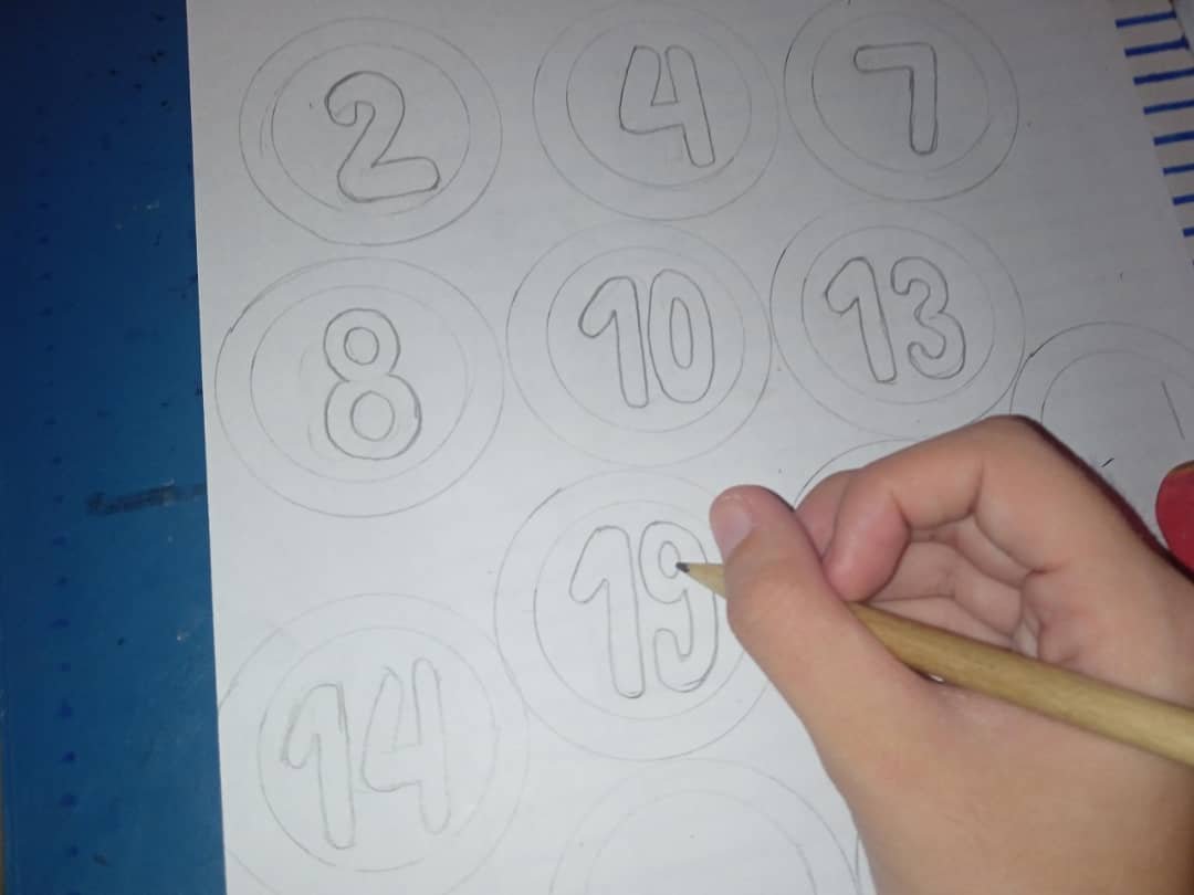 Después de dibujar todos los números me encargue darle color para que pareciera las bolitas del bingo que normalmente he visto.