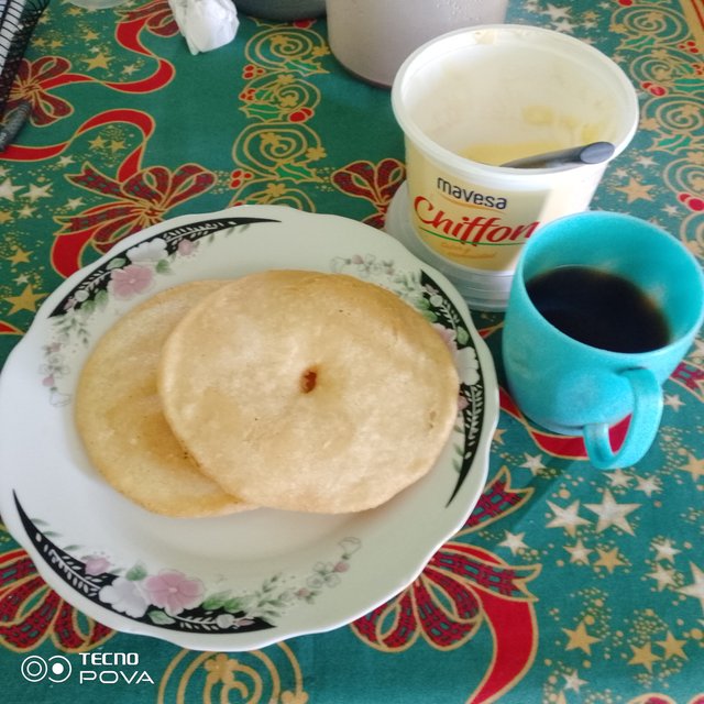 Mi desayuno, arepa frita con mantequilla y café ☕ | ![]() |