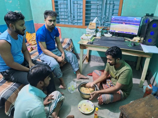 The most awaited time of the night is the Asia Cup Bangladesh vs India cricket match. Both our TV and cable lines here are broken, we now watch the game live on my PC, which is why everyone comes to my room to watch the game. The juniors of the flat are coming to my room. We are watching the game. Bangladesh won the toss and decided to bowl. India batted first and set a target of 169 runs for Bangladesh. We had dinner during the break of the match.