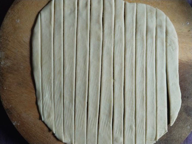 🫓 First I rolled out the bread. Then I cut it into thin slices with the help of a knife.