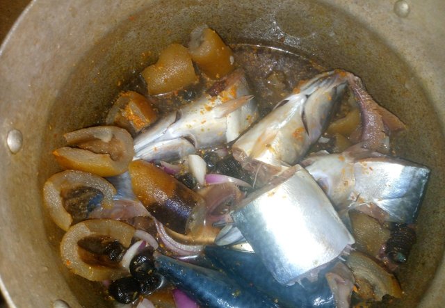 Cooking Dinner with Fresh Ingredients I cooked my soup with fresh ice fish, kpokpo, and other ingredients. Before 8:45 PM ,i was able to finish cooking. I dished some portions for myself and had my dinner.