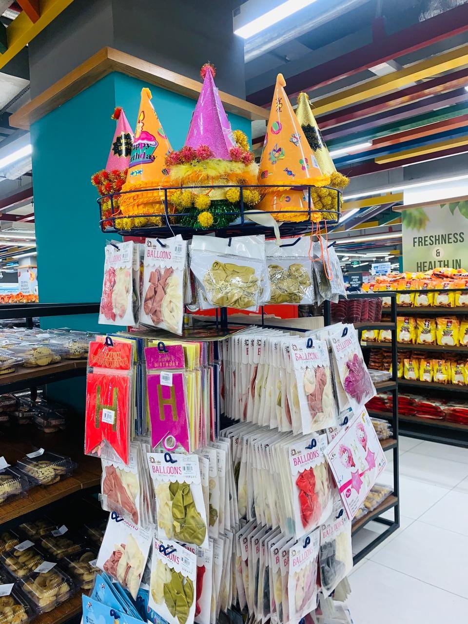 Near the midle of the store I found a section full of birthdy caps and decorations. It was colorful and cherful. You can find party hats candles balloons and wraping papers al in one place. and it is a great spot for parents planning kids birthdays.
