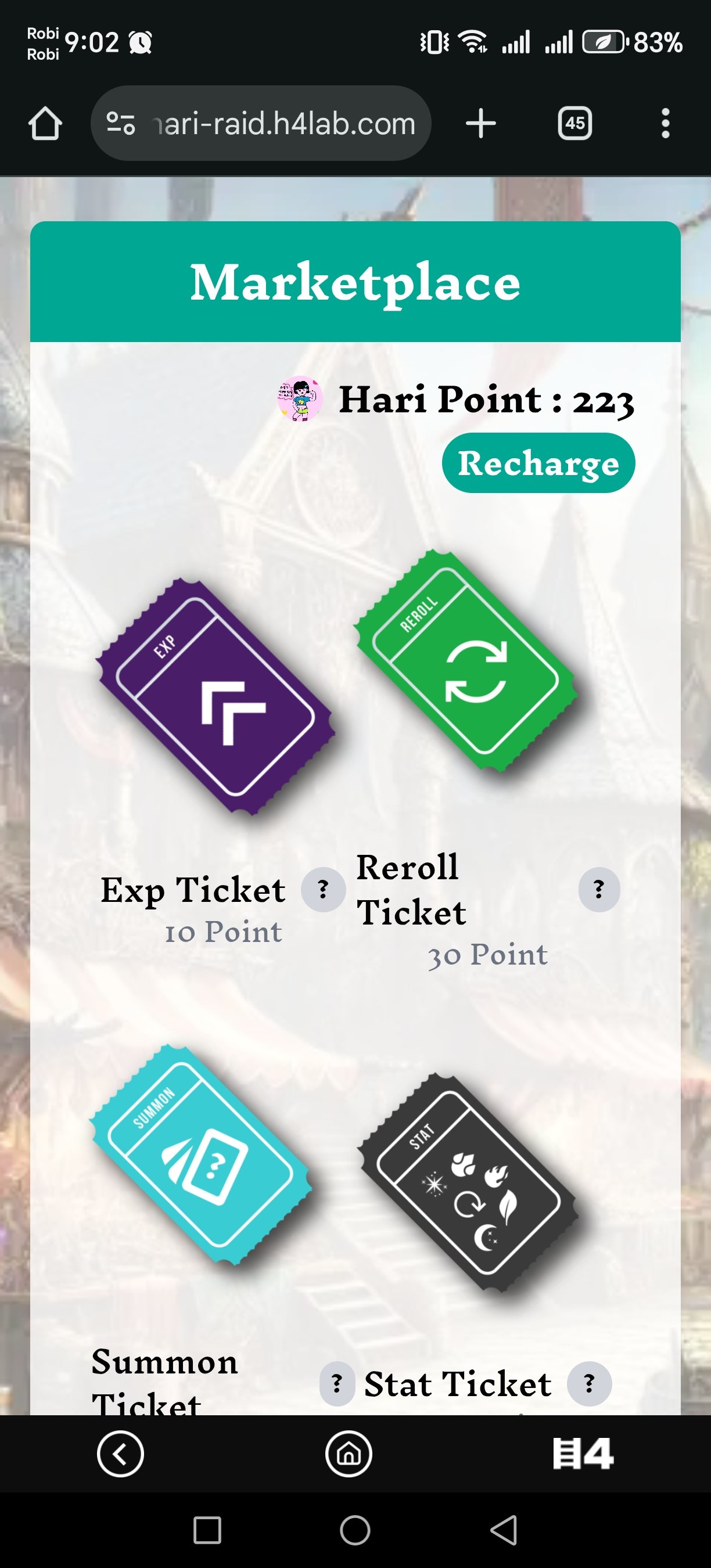 Today at first i claim 10 hari points then click on marketplace and my inventory,also use a stat ticket.
