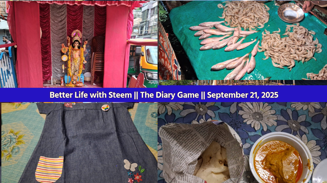 বাজারে যাওয়ার পথে দেখলাম যে একটা বিশ্বকর্মা ঠাকুরের এখনও ভাসান হয়নি। তাই আমি ওনার একটা ছবি তুলে নিলাম। তারপর আমি মাছের বাজারে গিয়ে ৫০০ গ্রাম ভোলা মাছ কিনলাম, এতে আমাদের দুজনের দুইদিন হয়ে যাবে। এরপর ২৫০ গ্রাম করলা আর ১ কেজি টোম্যাটো কিনে আমি বাড়ী ফিরে আসলাম। বাড়ী ফেরার পরে ভাতের সাথে ডিম, আলু সেদ্ধ আর বাটার দিয়ে আমরা ব্রেকফাস্ট করলাম। তারপর ও অফিস চলে গেলে আমি এক কাপ চা করে নিয়ে অনলাইনে কাজ করতে বসলাম।