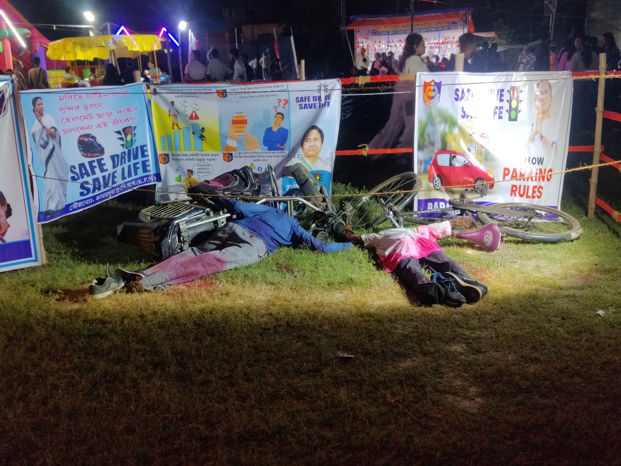 যেখানে একটা বাইক এবং সাইকেলের অ্যাক্সিডেন্টের দৃশ্য দেখানো হয়েছে। সেখানে দুটো নকল মানুষ তৈরি করা আছে, যাদেরকে দূর থেকে দেখে মনে হচ্ছে যেন অ্যাক্সিডেন্টে মারা গিয়েছে, সারা শরীরে রক্ত চিহ্ন।