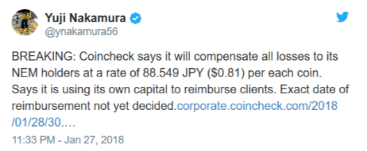 On January 26 at 03:00 local time, Coincheck, one of the 32-platform leaders in the country, was the victim of an attack that caused the theft of 523 million NMS, valued at about $ 534 million. . On January 27, Coincheck announced that they would reimburse the 260,000 victimized users of the attack. We can only welcome this gesture.