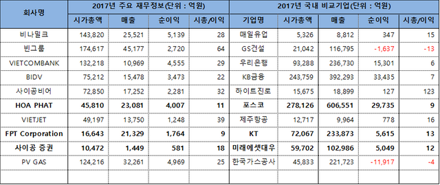 [베트남]주요기업 재무정보 요약 조사(국내기업과 비교)
