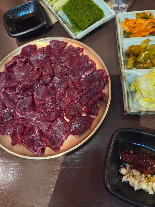 한때 얼굴 붉히며 열띤 토론을 했던 북클럽의 멤버들을 오랜만에 만났다. 멤버 중 하나가 차린 뭉티기 집에서 뭉쳤다. 뭉티기를 먹으며 다시 북클럽을 시작해보자고 뜻을 모았다. 물론 술자리의 다짐이라 어찌될지 알 수 없다. 뭉티기는 맛있었다.