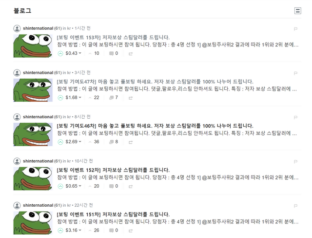 전 저런 포스팅에 대해 질적으로 문제가 있다고 생각합니다. 보상과 이득만을 위한 포스팅이겠죠. 서로 담합하여 보팅풀을 형성했던 것 일 수도 있을 것 입니다.