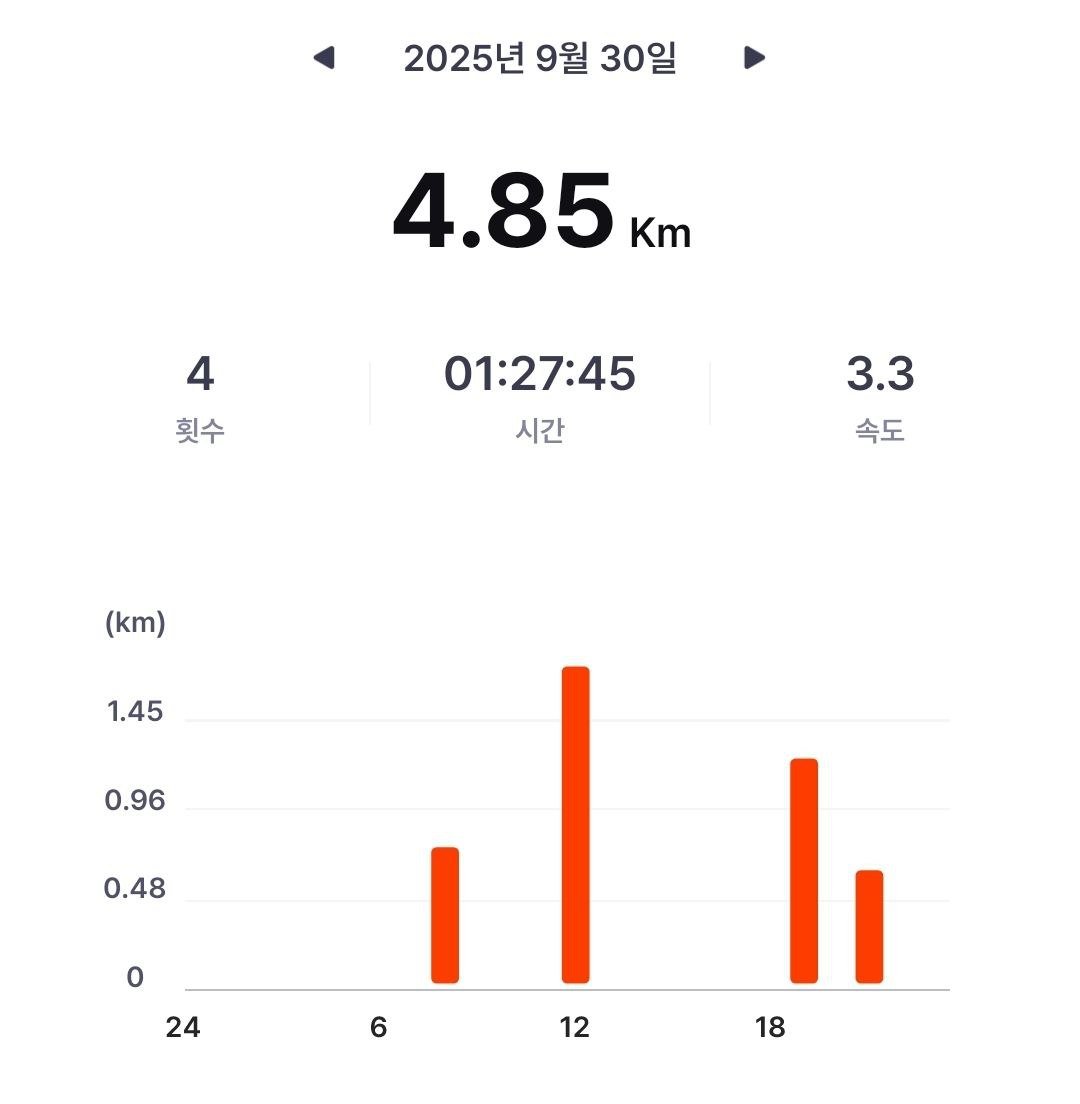 | dorian-lee [Posts] 오전 8:47:18 [M2E] 2025/09/30 오운완 4.85 km (일일 목표: 3 km) |