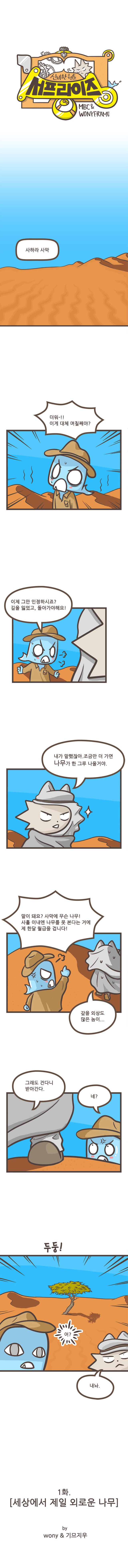 [웹툰] 세상에서 제일 외로운 나무wony (67)in #kr • 8 years ago 테네레 사막에 홀로 남겨진 세상에서 제일 외로운 나무 이야기 MBC랑 같이 만든겁니다 제가 저작권자니까 올려도 됩니다 (원작자?에게 허락 받았습니다) 사실 조만간 길게 포스팅 할 내용이 이 작품하고 관련이 있어서 먼저 보여 드릴겸 올렸습니다 (반응 좋으면 다른화도 종종 올리겠습니다) 즐거운 수요일 되셔용~ #kr-newbie #blog #webcomic
