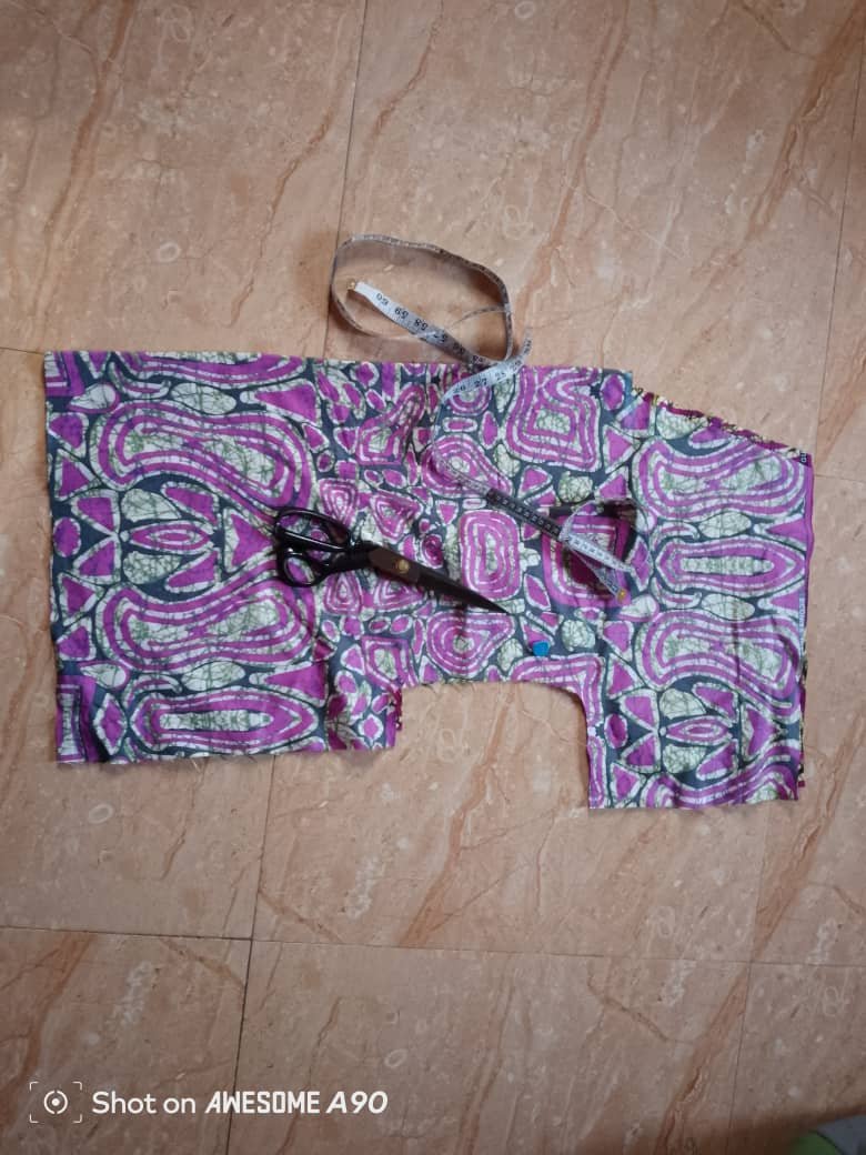 I had morning freshen up to get my day started as i prepared myself. I run a home workshop where i normally sew clients' clothes. I began cutting 3 types of fabric to give the best design i needed to sew for my clients.