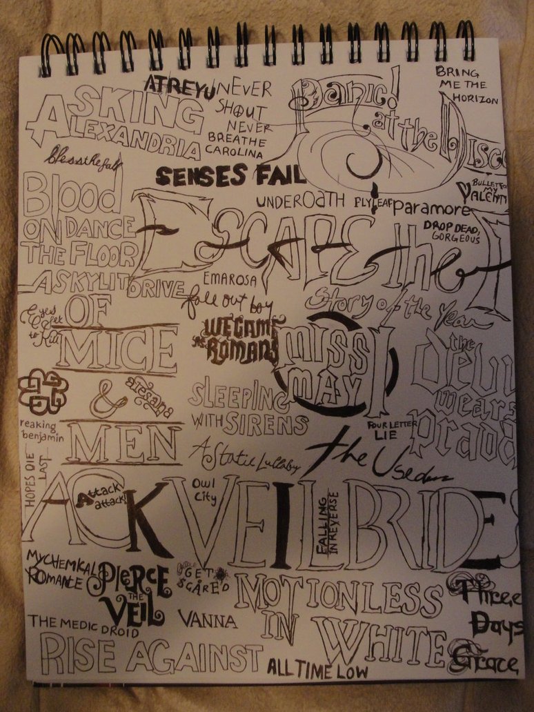 This is a picture I found on google I plan to do something similar with more bands though and smaller writing but these are some of our favorite bands depicted in this one photo obviously not all of them though.
