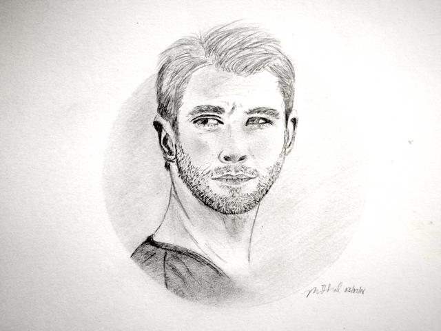 This is Chris Hemsworth commonly known as Thor from the Marvel movie. In my blog about the process of how I drew Thor, I mentioned it there that this was a request from @jasoncaspe because I wanted to challenge myself in sketching a portrait of a guy. I am acquainted with woman portraits but this is the first time I drew a guy. Should you want to take a look at my post on how I drew Thor, check it out here.