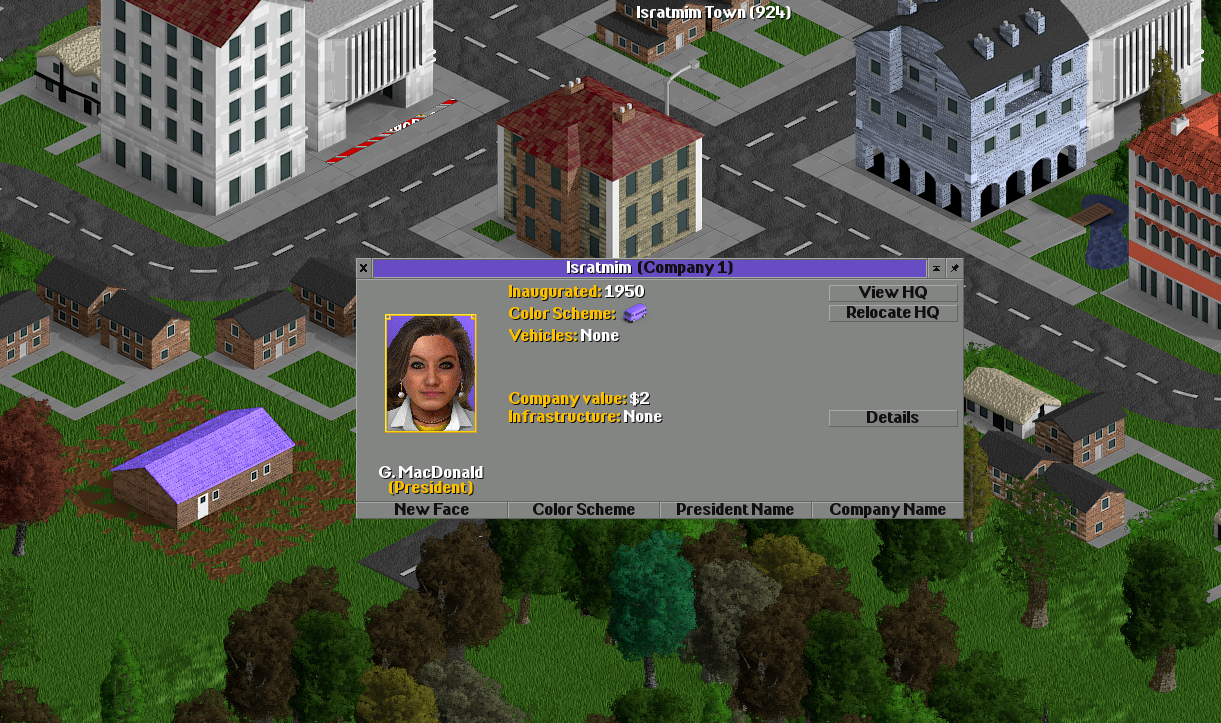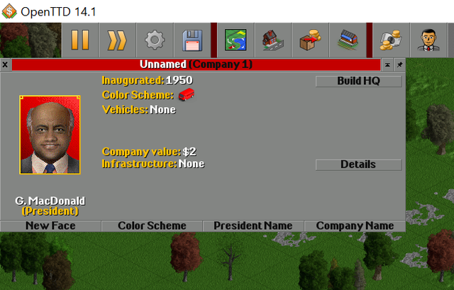 In OpenTTD, different windows are used to show information and to control the game. They have special buttons. For example, when I open the There are four options at the bottom of the General Company Information window. For example, one of the options here is the color scheme. Going to this will change the colors of this company's transportation system.