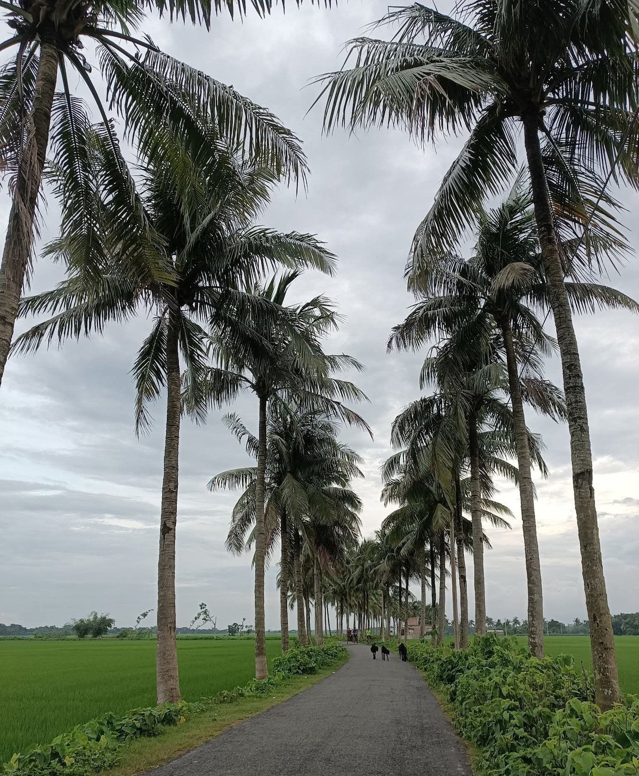 Here is a road, and on both sides of it there are beautiful rows of trees. These trees can be seen here very beautifully. The trees are very tall and slim, growing high up. The trees here are completely slender, tall, and full. Because of these trees, this road has become very beautiful, as we can see here, and we like it very much. After seeing them, I liked them a lot because the trees look very beautiful, and after seeing them, I felt happy and liked them very much.