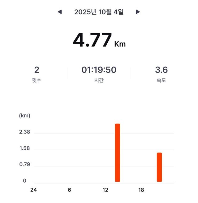 [M2E] 2025/10/04 오운완 4.77 km (일일 목표: 3 km)