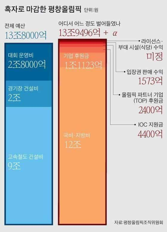 - 실제로는, 번돈 13조9496억 + 알파 중에 기업 후원금(1조1123억)과 지방세(13조1123억)이 94%를 차지 하고 있음