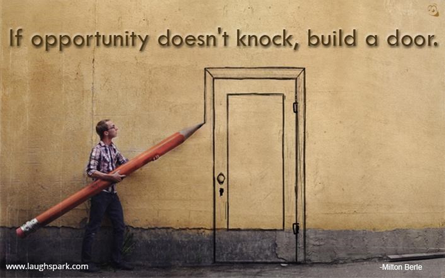 Quote of the Dayjoejames818 (44)in #quote • 8 years ago (edited) "If opportunity doesn't knock, build a door". Milton Berle Image source: 1 #inspirational #opportunity #motivation #steemit