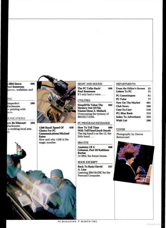 Table of Contents from the March 1983 issue of PC Magazine (continued)