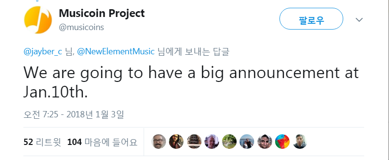 musicoin이 10일에 뭐 발표한다고 했으니 믿어봐야 겠다.