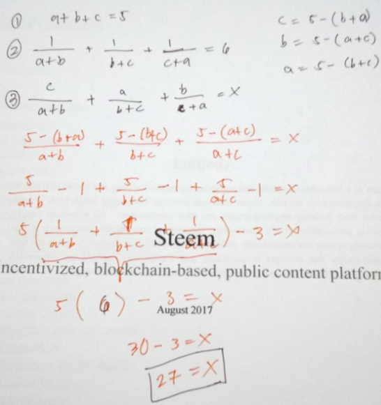 You got the right answer and showed work, correctly, to solve it therefore I will give you 1.5 SBD prize, second place.
