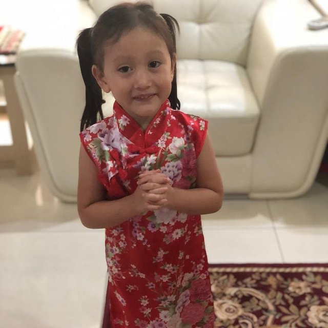 Still in chines new year mood. Wearing chongsom the whole day today in the house.
