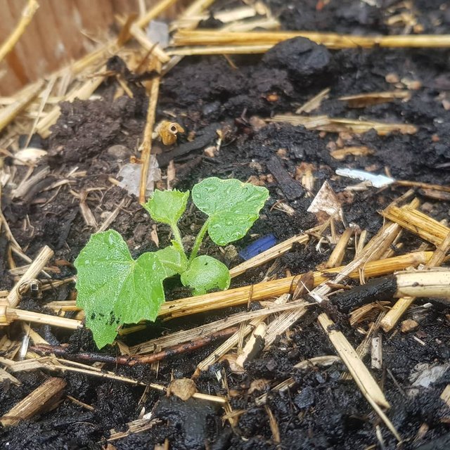 In an empty raised bed, I discovered a very tiny seedling, which had sprouted on his own. 🌱