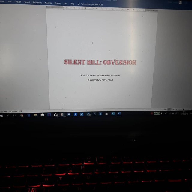 Working on my second horror novel, Silent Hill: Obduction. Remember that you can preorder it at https://bit.ly/2I7pt7Q