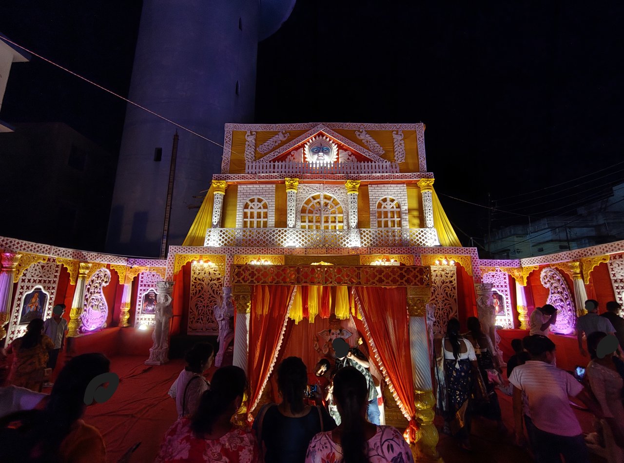 আসলে পরবর্তী যে প্যান্ডেল আমরা দেখতে পেলাম সেটি হল স্থানীয় একটি পাড়ার পুজো। যাইহোক এখানকার মানুষের চিন্তা ভাবনায় মুঘল সম্রাট এর রাজপ্রাসাদ উঠে এসেছে।