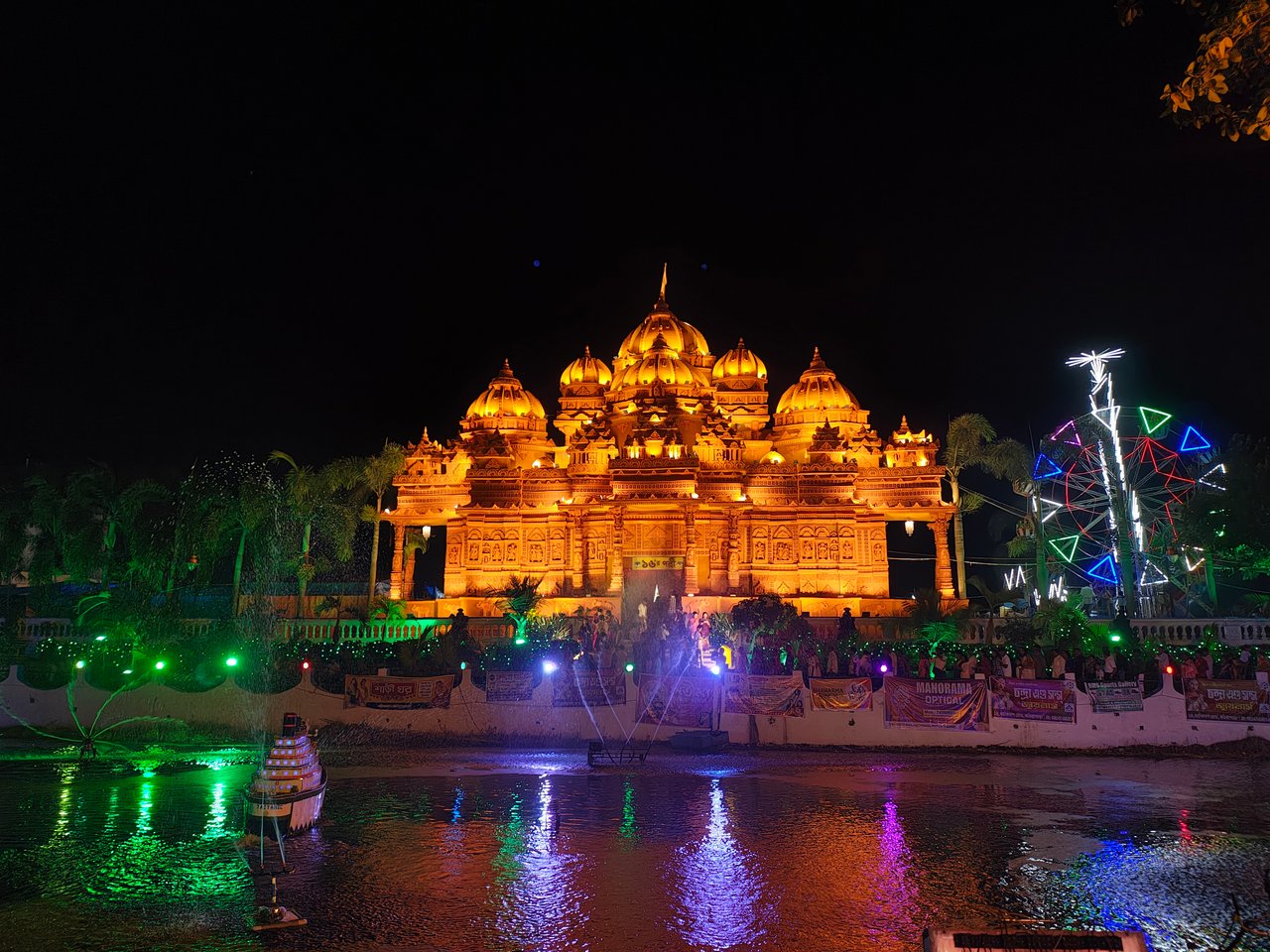 যেহেতু প্যান্ডেলের সামনে একটি বড় পুকুর রয়েছে তাই পুকুরের সামনে থেকে এই প্যান্ডেলটি দেখতে আরো অনেক বেশি ভালো লাগছিল আমাদের কাছে। তাই দুই দিক থেকে দুই অ্যাঙ্গেলে ছবিটি তুলে আপনাদের সামনে উপস্থাপন করলাম।