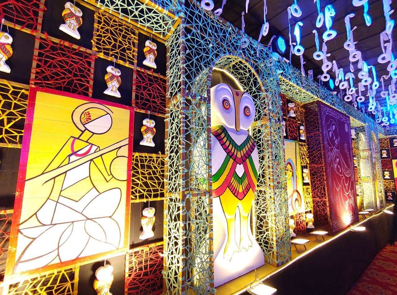 আসলে এই প্যান্ডেলটি কিন্তু রঙিন সুতোয় করা হয়েছে। এজন্যই এর নাম করা হয়েছে রঙিন সুতোয় শারদীয়া উৎসব।