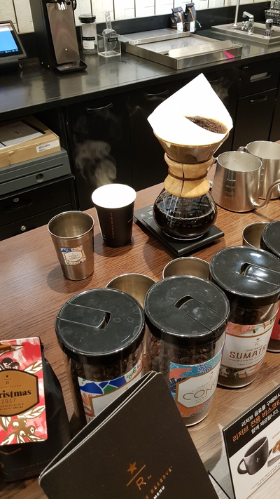 바에서 처럼 앉아서 커피 하는 것도 보고