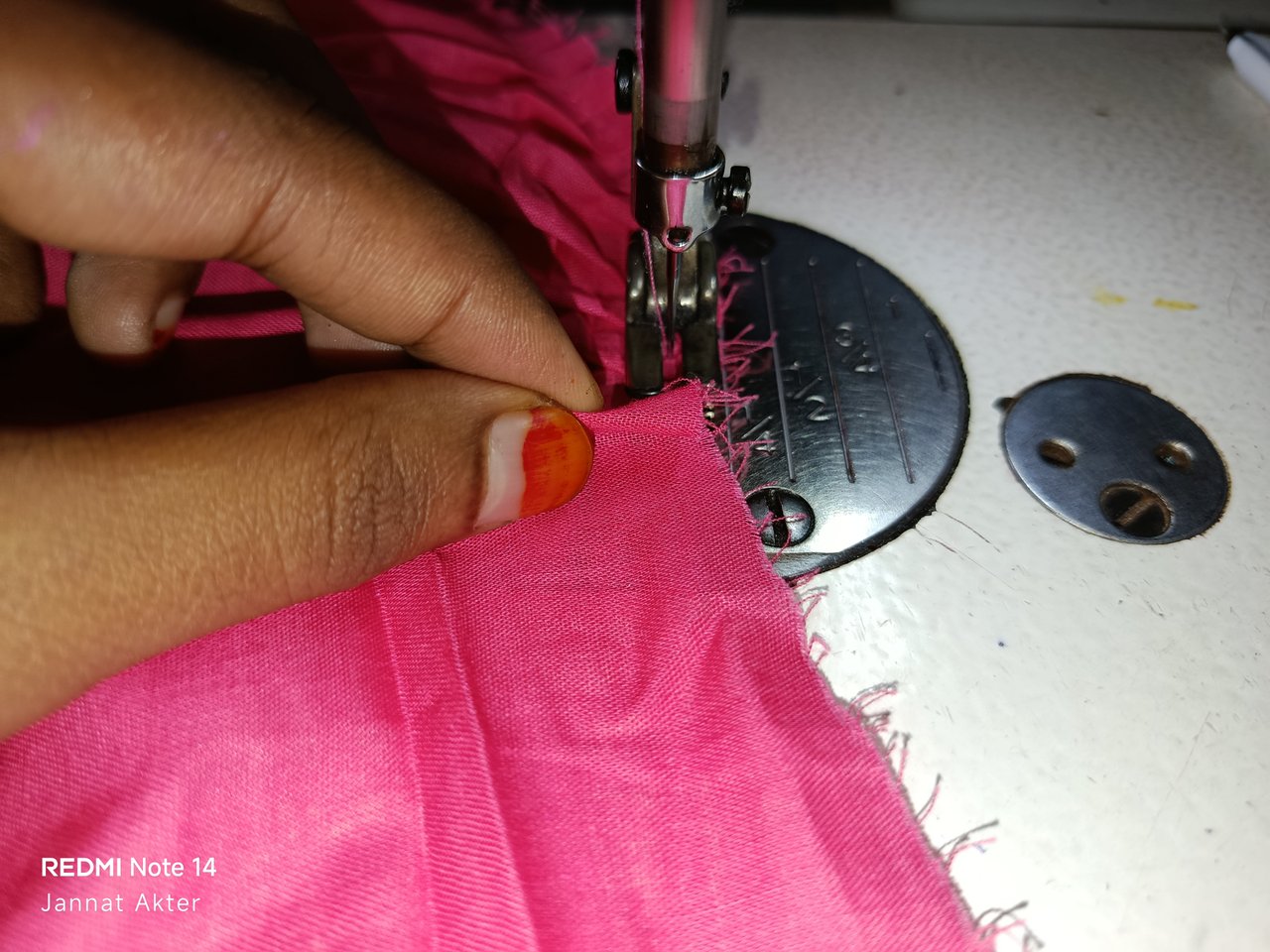 Then I sewed the hem of one side of the pajamas. I will sew a hem from one side of the hem of the pajamas. To sew the hem, I will put the fabric through the machine and fold another fabric over it and sew it to the hem of the pajamas.