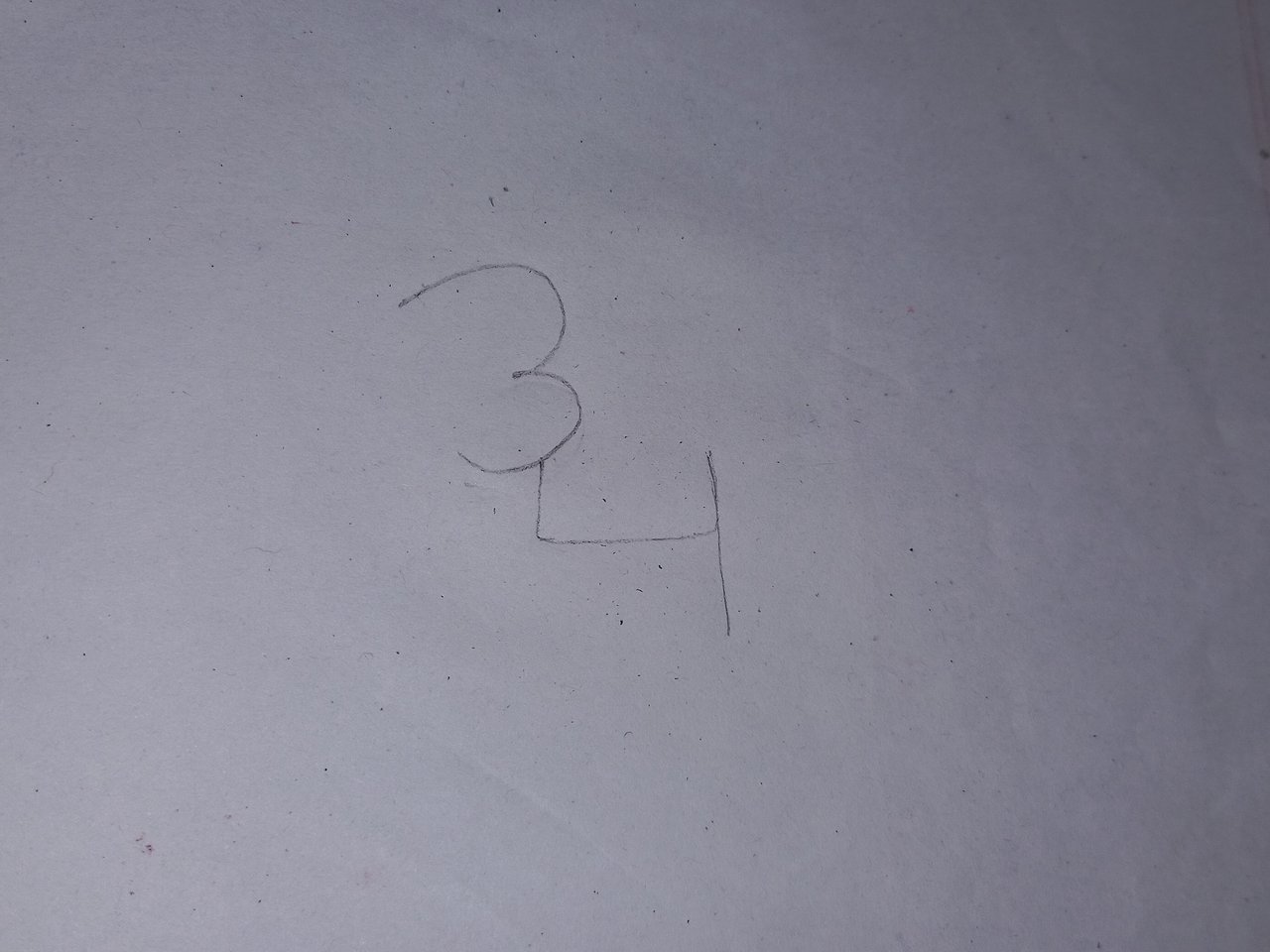 At first draw a small '3' on a white paper. Draw a '4' shape from the lower right side of the '3'.