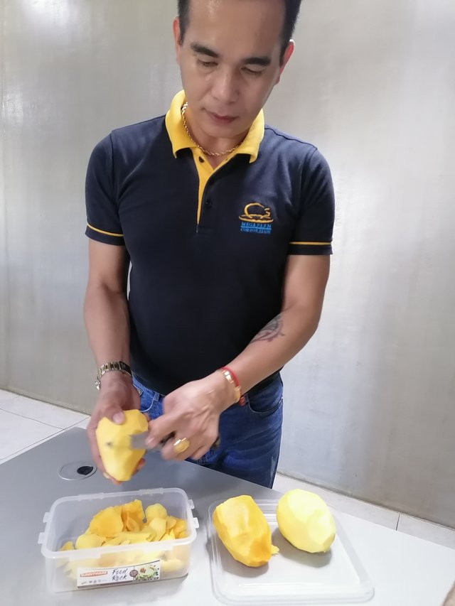During our Lunchbreak, Sir Fonzy came from his walk in the city and he brought apple mangoes! we were still eating at that time so he asked Sir Greg to peel them, he eats at 11:45 in the morning so he is free at 12. He washed and peeled ut and sliced some and boy, it was very good!