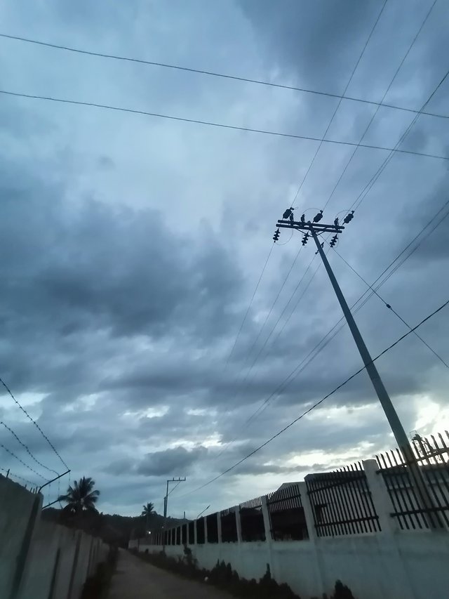 The evening came, and it was very cloudy. The sun was not able to display colorful rays on the clouds and it even looks cold.