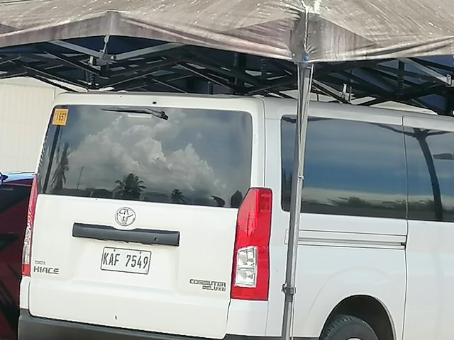Here's its reflection on the company shuttle. Im glad it was parked there and I was able to take a good picture of it