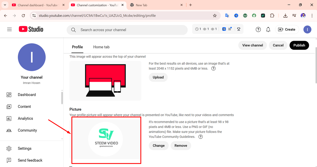 Now you can see that I have uploaded both my profile photo and cover photo here, and the work of customising the photo upload on my channel is already finished. Now I have to do some work.