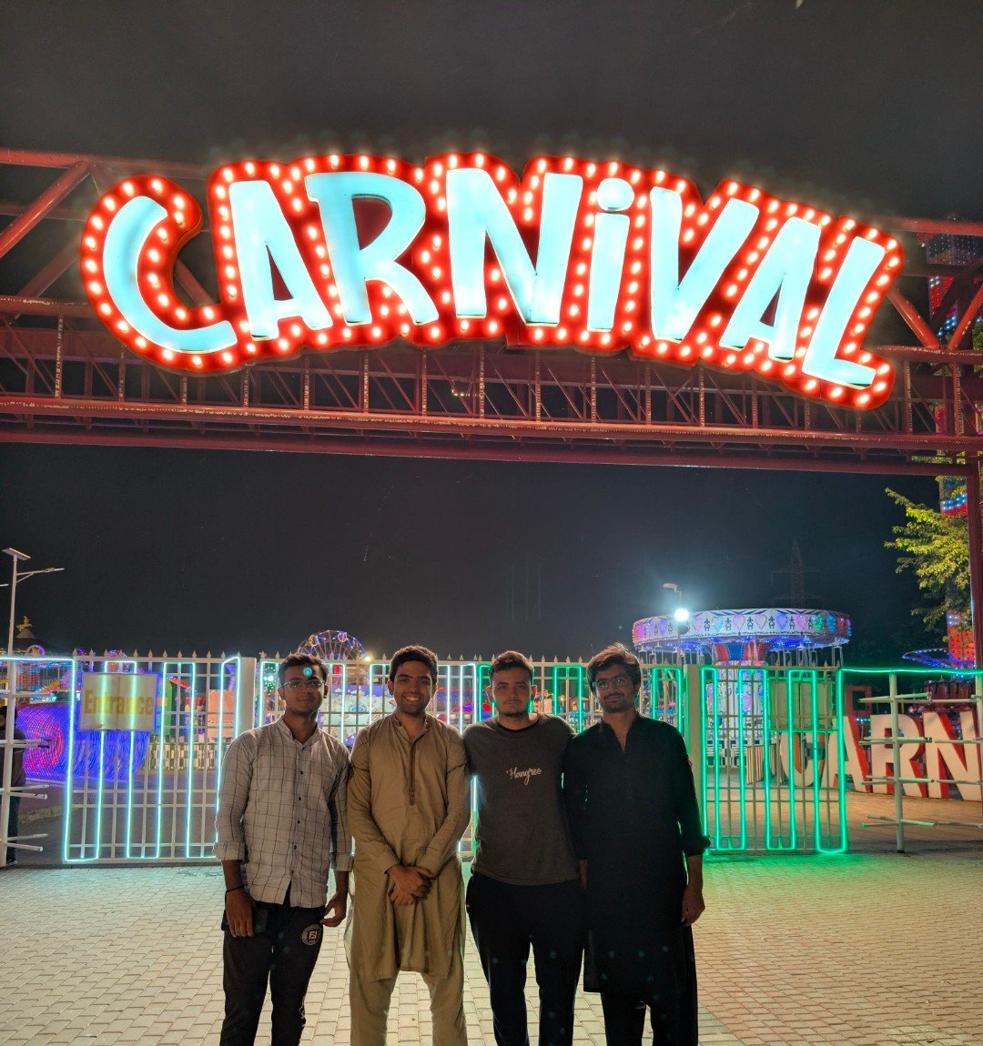 Then after that we arrived on the carnival. Unfortunately it was closed at that time because that time was 12:00 am. We were too late. So we take group picture in front of carnival. I'm sharing the pictures with you.
