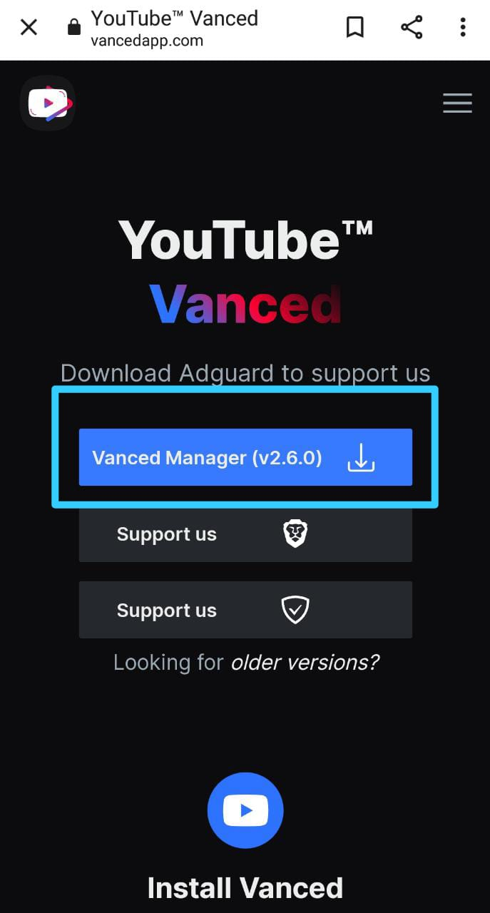 Click on the first link, and you will see this type of interface. Click "Download Vanced Manager".