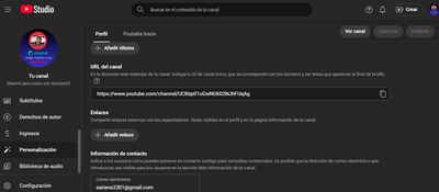 Next, I copied the URL of my channel and saved it so I could share it later. I also entered my email address as contact information. Finally, I clicked publish to complete the creation of the channel, which I created with the goal of becoming a YouTuber.