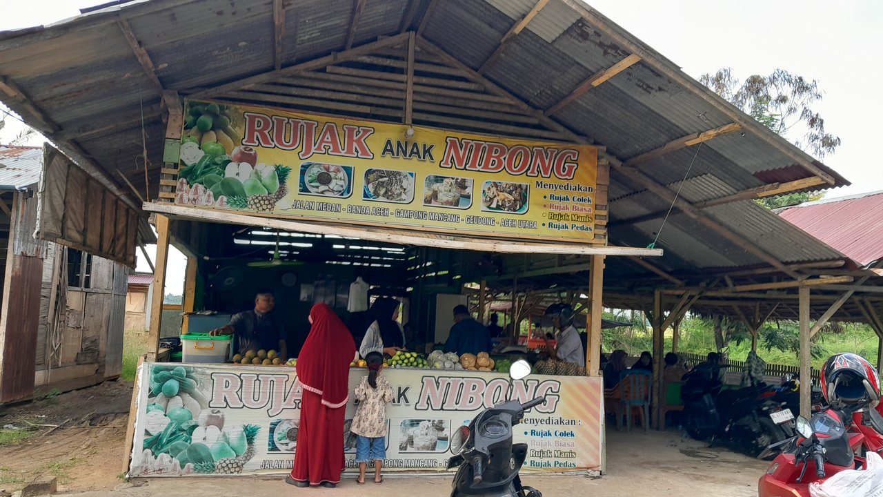 Dan juga rasa rujak tersebut jauh berbeda dengan rujak rujak yang lain nya, maka dengan itu setiap saya pergi ke geudoeng tetap saya beli rujak, tapi rujak yang aku katakan tadi yaitu rujak nibong, walaupun di buka cabang ke mana saja yang namun resep tetap seperti biasa, maka dengan demikian rasa tetap seperti biasa yaitu tidak ada perubahan rasa rujak nya sedikit pun.