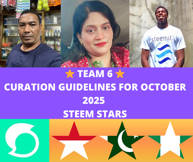 Team:6 Curation guidelines for October -25 team Steem Stars ⭐⭐⭐