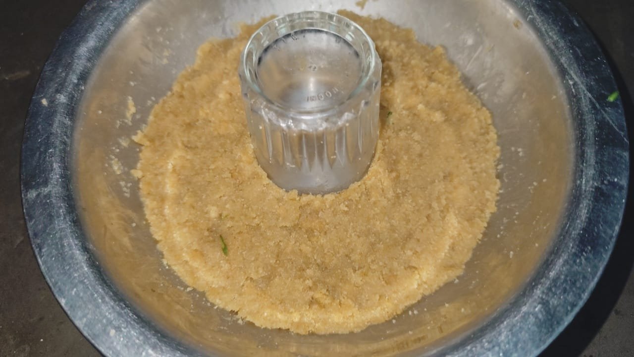 Then I drained it well and mixed the semolina with milk to make it sticky.