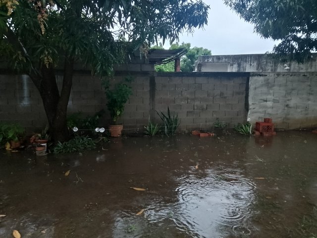 La lluvia comenzó a bajar de intensidad cómo a las 09:00 am, salí afuera nuevamente y pude constatar el terreno lleno de agua. Gracias a Dios, el tanque subterráneo que se filtra sirvió de depósito para esa gran cantidad de agua que cayó, de lo contrario, nos hubiésemos inundado.