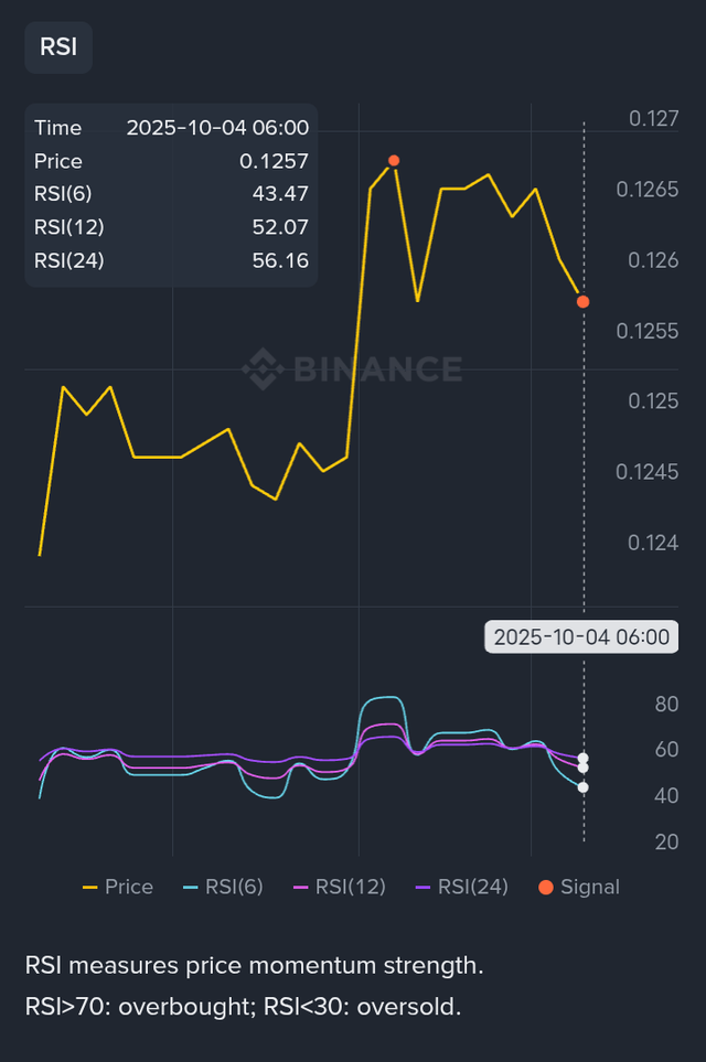 RSI Overbought : The 6period RSI has dropped to 43.47 after previously reaching overbought levels above 80 on October 3rd, indicating a coolingoff period and potential for further price correction in STEEM.